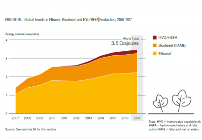 不過(guò),他們還強(qiáng)調(diào),“2017年全球努力繼續(xù)展示先進(jìn)生物燃料的生產(chǎn)和使用”。請(qǐng)記住,有多條生產(chǎn)線,包括航空用途。根據(jù)REN21,目前的市場(chǎng)由水生生物柴油,其次是木質(zhì)纖維素材料的乙醇作為作物殘?jiān)约皝?lái)自包括氣化和熱解的熱化學(xué)過(guò)程的燃料。
