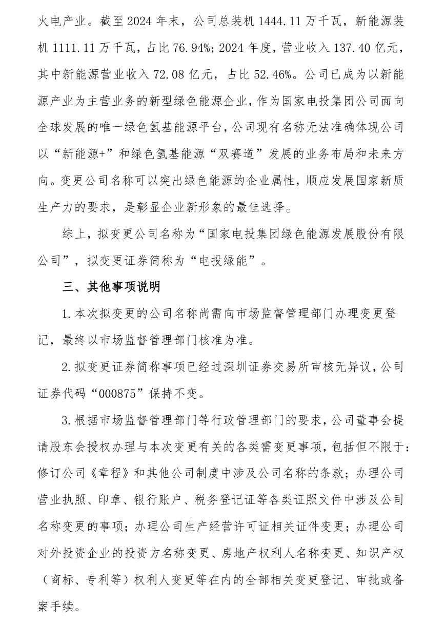 吉電股份發布公告稱,公司于8月20日召開第九屆董事會第三十四次會議,審議通過了《關于變更公司名稱及證券簡稱的議案》,擬變更公司名稱為“國家電投集團綠色能源發展股份有限公司”,擬變更證券簡稱為“電投綠能”。