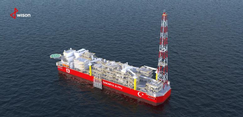 據悉,Sakarya氣田位于黑海海域,距土耳其海岸約170公里,水深2150米,于2020年8月被探明,天然氣儲量達4050億立方米,是土耳其迄今發現的最大天然氣田。土耳其石油公司正在分三個階段對其進行開發。FPU作為第三階段的核心生產設施,需滿足黑海2150米深水作業、博斯普魯斯海峽56米通航高度限制等嚴苛的作業環境要求,其設計具備2500萬標準立方米/日天然氣外輸能力,1350標準立方米/日水處理能力,以及2503立方米/日的乙二醇(MEG)再生與注入能力,設計壽命至少30年。