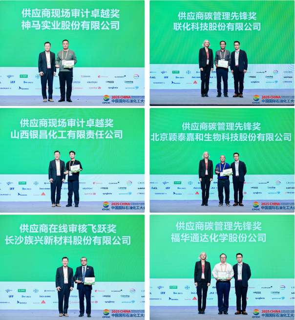 大會聚焦TfS兩大核心項目——TfS評估和TfS審計的進階培訓(xùn)。TfS成員企業(yè)代表闡釋了線上問卷與現(xiàn)場審計的注意事項與優(yōu)化流程,為中國化工企業(yè)提供了可行性經(jīng)驗,助力其高效完成考核,并持續(xù)提升可持續(xù)績效。2024年,TfS成員企業(yè)在全球范圍內(nèi)對化工供應(yīng)商合計開展了13678項評估和596項審計,其中中國供應(yīng)商占比分別高達(dá)11%和62%,進一步凸顯中國化工供應(yīng)鏈在可持續(xù)轉(zhuǎn)型中的關(guān)鍵地位。大會特別設(shè)立表彰環(huán)節(jié),授予在TfS評估和審計中得分優(yōu)異的供應(yīng)商獎項:神馬實業(yè)股份有限公司平頂山工廠、山西銀昌化工責(zé)任有限公司獲現(xiàn)場審計卓越獎,長沙族興新材料有限公司獲在線審核飛躍獎。與會供應(yīng)商還分享了可持續(xù)實踐經(jīng)驗及價值鏈協(xié)同案例,推動上下游合作共贏。