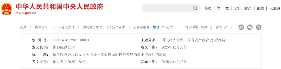 國務院辦公廳印發《關于進一步促進民間投資發展的若干措施》的通知