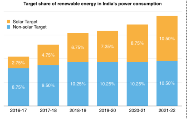 現(xiàn)在,由電力部通知的最新版本將要求各國(guó)重新審視其目前的軌跡并將其重新調(diào)整到國(guó)家目標(biāo)。非太陽(yáng)能RPO目標(biāo)的跳躍不大 - 2018-19年為10.25%,2021-22年為10.50%。然而,太陽(yáng)能RPO目標(biāo)的跳躍幅度很大 - 2018-19年為6.75%,2021-22年為10.50%。