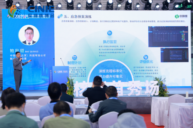 展會期間,中瑞恒解決方案經理鮑秋碩的《大型能源場站智慧安全管理體系建設探討》專題分享,吸引了眾多專業人士聆聽,演講結合行業案例,系統闡述了智慧安全管理體系的建設路徑,引發了與會者的熱烈討論。