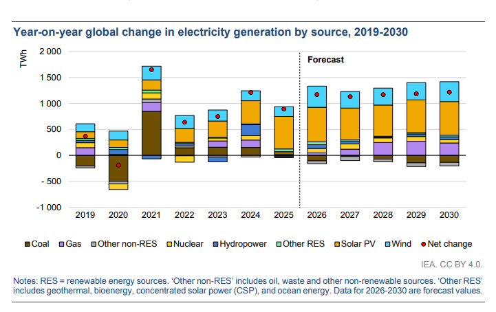 國際能源署(IEA)6日發布《2026年電力市場展望》,預測在2026-2030年,全球發電量將達到多個新的里程碑。