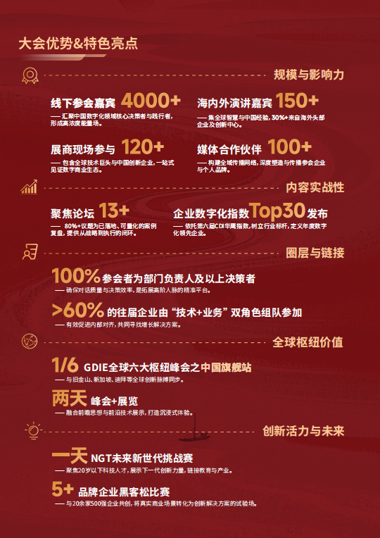 行業(yè)風(fēng)向標(biāo):4000+國(guó)內(nèi)外企業(yè)高管、學(xué)術(shù)專(zhuān)家、技術(shù)專(zhuān)家線下齊聚,探索數(shù)字化未來(lái)的更多可能性
