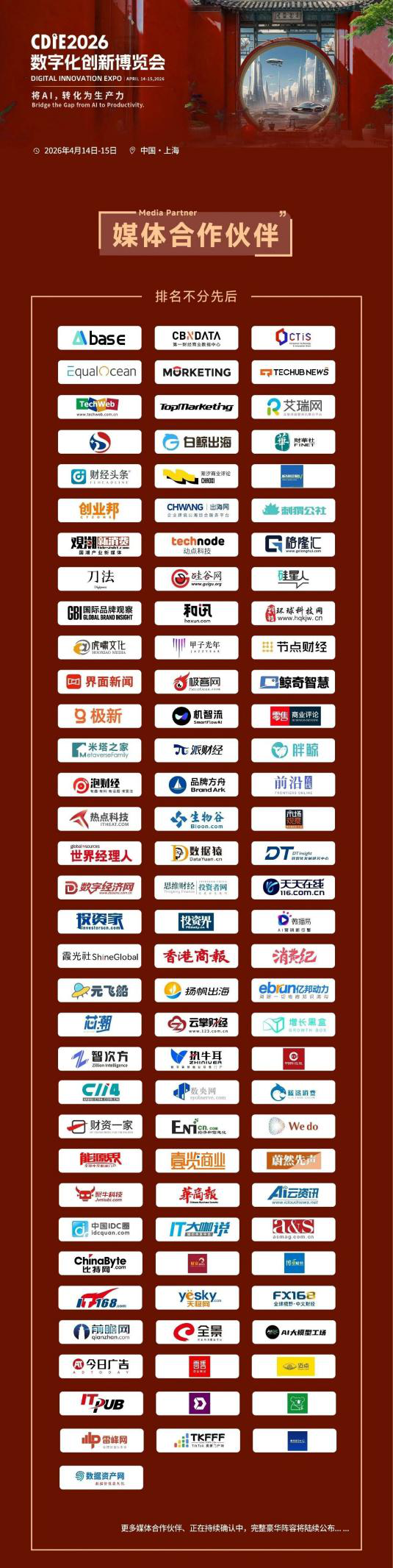 CDIE2026作為數(shù)字化領(lǐng)域的年度盛會(huì),其籌備進(jìn)程始終備受行業(yè)矚目。目前已成功攜手100+國(guó)內(nèi)外主流媒體與垂直領(lǐng)域頭部媒體達(dá)成深度合作,構(gòu)建起覆蓋科技、金融、制造、零售、消費(fèi)等多個(gè)賽道的全媒體傳播矩陣。