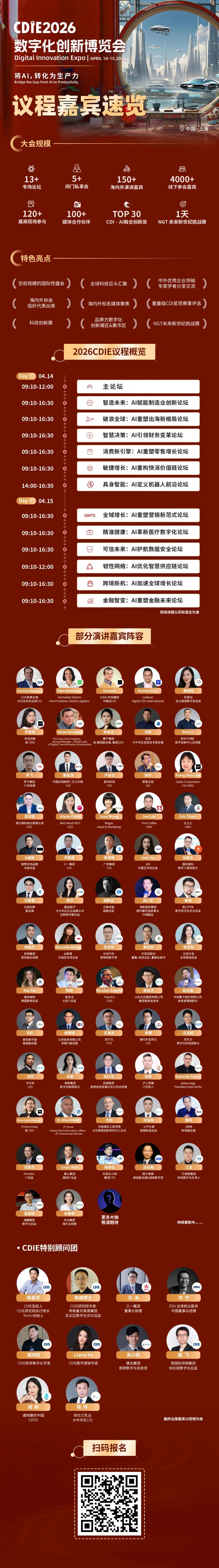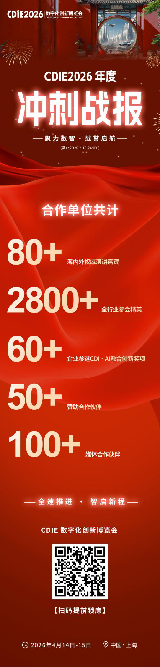 在此關(guān)鍵突破期,2026第十二屆CDIE數(shù)字化創(chuàng)新博覽會(huì) 將于2026年4月14日-15日在中國(guó)上海舉行。
