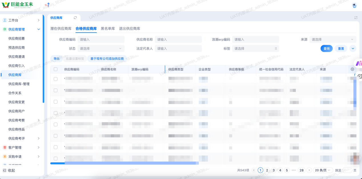 系統(tǒng)“供應(yīng)商管理-供應(yīng)商庫”頁面