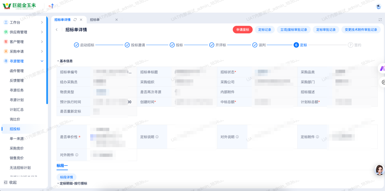 系統(tǒng)“尋源管理-招投標(biāo)”頁面