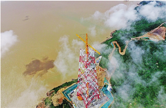 6月29日下午,位于舟山市冊子島的380米世界第一輸電鐵塔高度已達281.5米,雄姿初現。目前,施工人員正在對現場220米以下的抱桿進行拆除,準備安裝施工電梯,為余下的近100米鐵塔組立工作做好準備。據了解,380米世界第一輸電鐵塔組立工程是舟山500千伏聯網輸變電工程的重要節點,在金塘島和冊子島各建一座380米的輸電高塔。