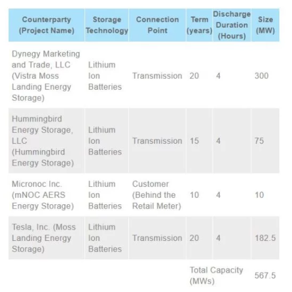 今年1月,加州公用事業委員會授權太平洋天然氣和電力公司征求提案,以解決其服務區域三個部分的能源可靠性需求。2月,PG&E開始了這一過程,并收到了各種投標人的一些提案。在對所有項目進行分類和篩選后,它選擇了一個公用事業項目的報價和三個第三方擁有項目的報價,這些報價都位于South Bay-Moss Landing當地的子區域內。根據公司新聞稿,如果PUC批準PG&E的計劃,新的電池存儲設施將在2019年和2020年上線。