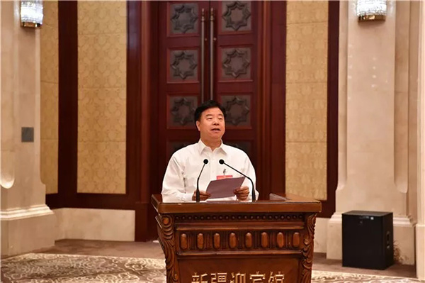 新疆自治區(qū)黨委書記陳全國,國務院國資委黨委書記郝鵬,新疆自治區(qū)黨委副書記、新疆生產(chǎn)建設兵團黨委書記、政委孫金龍出席會議。