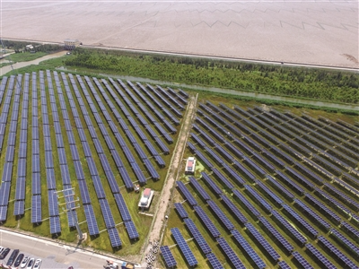4500畝灘涂鹽堿地成灘涂農光互補光伏發電基地。 胡志欽 攝