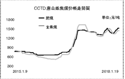 1月初,山西焦煤集團和潞安集團接連上調其公路煤炭銷售價格,其中山西焦煤集團肥精煤、焦精煤公路銷售價格均較2017年12月每噸上漲100元,潞安集團司馬瘦精煤價格較2017年12月每噸上調30元。隨后,山西各品種煉焦煤市場價格整體保持了基本平穩。其中,安澤低硫主焦煤(含硫0.5%)出廠含稅價基本穩定在每噸1640元左右,柳林高硫主焦煤(含硫2%)出廠含稅價基本穩定在每噸1050元左右,靈石高硫肥精煤(含硫1.8%)出廠含稅價基本穩定在每噸1150元左右,長治貧瘦精煤(含硫0.5%)出廠含稅價基本穩定在每噸1070元左右。