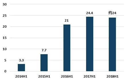 2014—2018年半年度我國新增裝機情況(單位:GW)