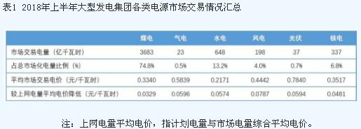 2018年上半年,大型發(fā)電集團(tuán)上網(wǎng)電量合計(jì)15286億千瓦時(shí),市場(chǎng)交易電量合計(jì)4927億千瓦時(shí)(不含發(fā)電權(quán)交易電量)。