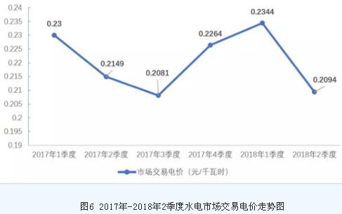 2018年上半年,大型發(fā)電集團(tuán)水電機(jī)組上網(wǎng)電量2506億千瓦時(shí),占其總上網(wǎng)電量的16.4%;水電市場(chǎng)交易電量648億千瓦時(shí),市場(chǎng)化率達(dá)到25.9%,市場(chǎng)交易平均電價(jià)為0.2171元/千瓦時(shí)。