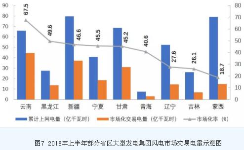 2018年上半年,大型發(fā)電集團(tuán)風(fēng)電機(jī)組累計(jì)上網(wǎng)電量829億千瓦時(shí),占其總上網(wǎng)電量的5.4%;風(fēng)電市場(chǎng)交易電量198億千瓦時(shí),市場(chǎng)化率為23.9%,其中跨區(qū)跨省交易電量約90億千瓦時(shí),占其市場(chǎng)交易電量比重45.5%。
