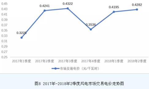2018年上半年,大型發(fā)電集團(tuán)參加風(fēng)電市場(chǎng)交易的省份共有16個(gè),其中市場(chǎng)交易電量最多的三個(gè)省份是云南、新疆和甘肅,分別為44.5億千瓦時(shí)、37.1億千瓦時(shí)和31.0億千瓦時(shí),平均交易電價(jià)(含跨省跨區(qū)送出交易電量電價(jià))分別為0.4418元/千瓦時(shí)、0.4400元/千瓦時(shí)和0.3726元/千瓦時(shí)。風(fēng)電市場(chǎng)化率居前幾位的省份依序?yàn)椋涸颇?67.5%)、黑龍江(49.6%)、新疆(46.6%)、寧夏(45.5%)、甘肅(45.2%)。