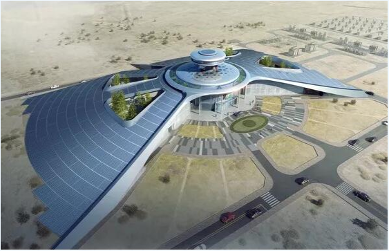 絲路明珠項目以“綠色、生態、節能、健康”為的建筑設計指導理念,以“四節一環保和近零排放”為設計宗旨,集展覽展示、辦公、住宿、生活為一體,表層整體覆蓋光伏板,集中體現先進的節能環保理念、優美的生態環境、豐富的生產管理功能等特色。