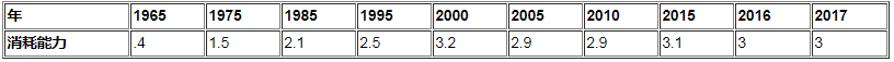 表21:1965年Mtoe以來的埃及風(fēng)能消耗