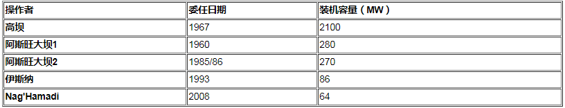 表19:埃及的水力發(fā)電廠