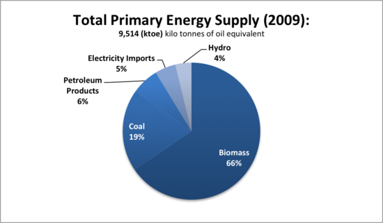 生物質占能源使用的約66%。薪材是該國最重要的家用燃料。它是烹飪,照明和供暖的主要能源,80%以上的人口主要在農村和城郊地區。