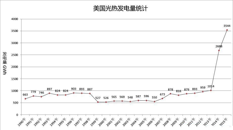 圖表:西班牙光熱發電量統計(1990~2015年)