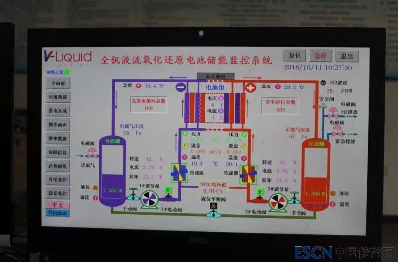 據介紹,樂山市第二污水處理廠自去年9月開始啟用樂山創新儲能技術研究院有限公司生產的全釩液流儲能示范工程,設備開啟后,管理人員可以通過全釩液流氧化還原電池儲能監控系統對電池的運轉情況進行實時監控,及時掌握相關數據。第二污水處理廠技術員羅科介紹說,新型儲能電池在污水廠的投用,不僅有效降低了使用傳統儲能設備帶來的環保壓力,也幫助縮減了污水處理廠的電費成本。