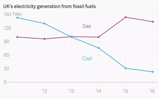 2012年英國(guó)發(fā)電碳排放強(qiáng)度在33個(gè)發(fā)達(dá)國(guó)家中排在第20位,僅僅5年以后英國(guó)在這個(gè)榜單上的排名升到第7位。在這么短的時(shí)間內(nèi)實(shí)現(xiàn)電力系統(tǒng)的低碳轉(zhuǎn)型,在發(fā)達(dá)國(guó)家中是絕無(wú)僅有的成就。