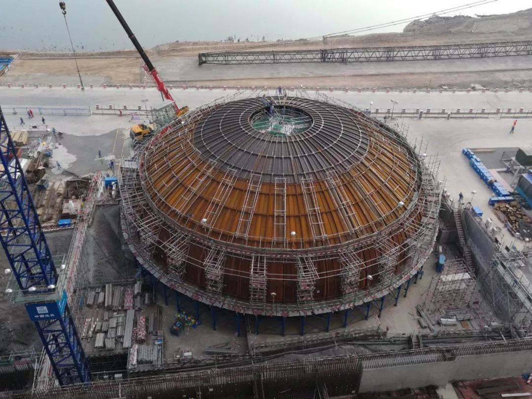 防城港3號機第3層穹頂板吊裝就位