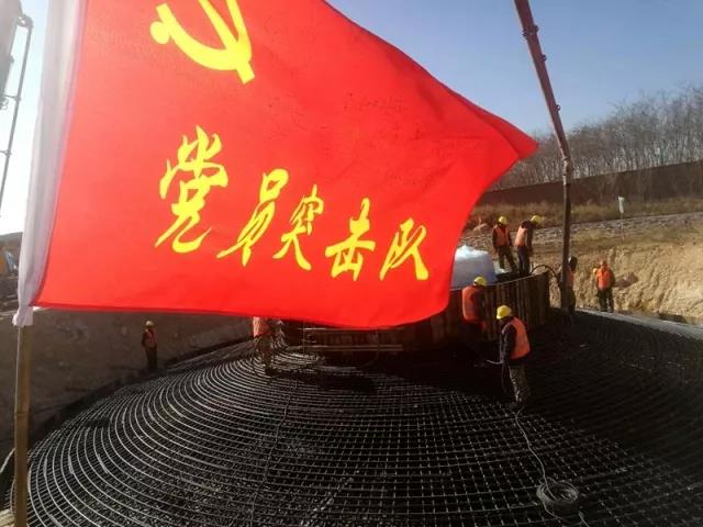 工期是效益。在保障安全、質(zhì)量的前提下,以及1號(hào)風(fēng)機(jī)基礎(chǔ)施工圖紙2017年10月20日到圖的實(shí)際情況,突擊隊(duì)隊(duì)員周密組織、不等不靠、認(rèn)真籌劃、以艱苦奮斗的精神和敢打硬仗的作風(fēng)披荊斬棘,戰(zhàn)勝一個(gè)個(gè)困難,攻克一道道難關(guān)。短短幾天即完成1號(hào)風(fēng)機(jī)的FCD,2017年12月4日混凝土強(qiáng)度即滿足吊裝條件,全體黨員以實(shí)際行動(dòng)充分體現(xiàn)了黨員的先鋒模范作用和黨支部的戰(zhàn)斗堡壘作用,讓黨員突擊隊(duì)的旗幟在施工現(xiàn)場(chǎng)迎風(fēng)飄揚(yáng)。