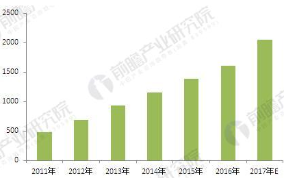 圖表4:2011-2017年中國合同能源管理行業產值規模(單位:億元)