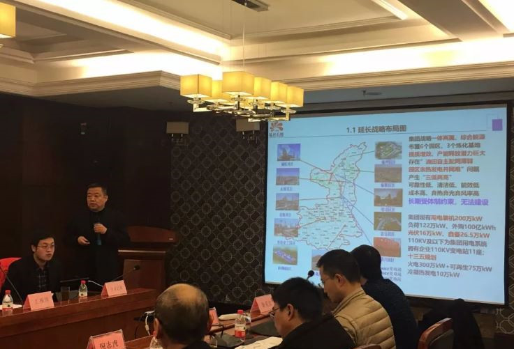 延安新電能源開發有限責任公司總經理徐進代表兩個項目的可研委托單位,向評審組專家介紹了兩個項目的背景及意義等情況。徐進表示,延長石油集團抓住電力體制改革機遇,立足當前、直面未來,加強統籌規劃、強化頂層設計,通過兩個國家示范項目的建設,既可以解決油田供電難、園區余熱發電并網難的“兩難”問題,又可以解決供電可靠性低、能源清潔化水平低、能效低、用能成本高、棄熱棄風棄光率高等“三低兩高”問題。延長石油集團利用自有園區、持續穩定的負荷增長、較強的投資意愿和投資實力優勢,打造延長能源互聯網、開展綜合能源服務,完成國家首批兩個示范工程,前景廣闊。