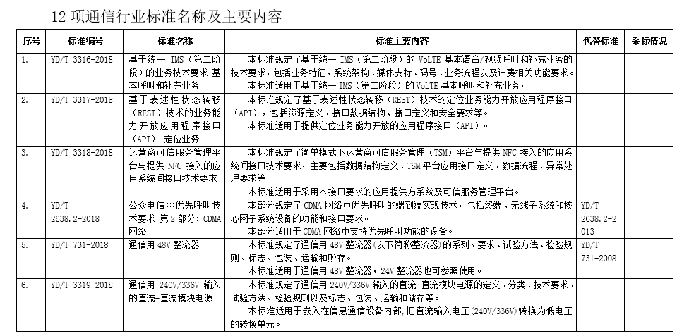 附件: 12項通信行業標準名稱及主要內容