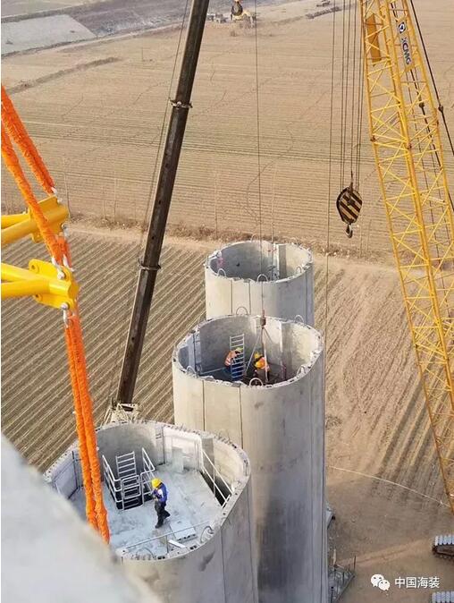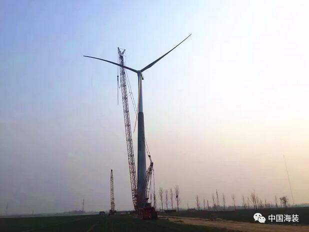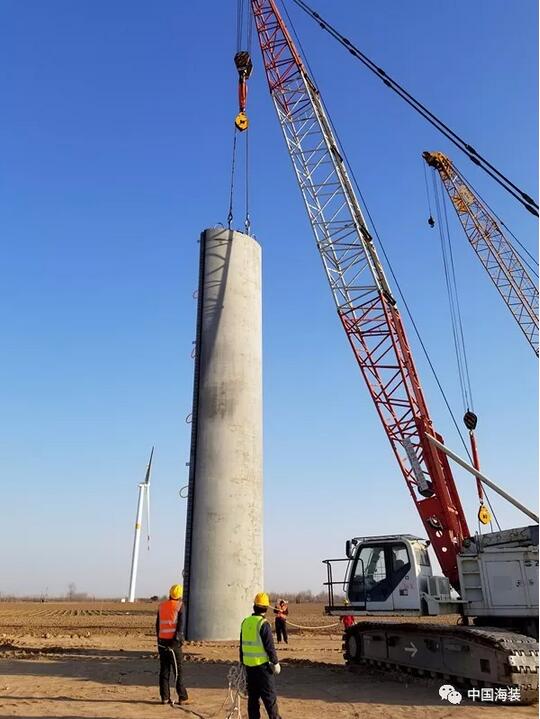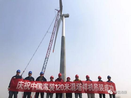 2017年7月,中國海裝正式啟動120米輪轂高度鋼混塔筒研制項目,12月開始塔筒吊裝工作。整個項目在歷經(jīng)九個月的精耕細(xì)作后,于2018年3月22日,完成樣機(jī)吊裝工作。