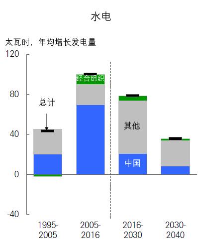 報告中提到,水電增長(年均1.3%,61太瓦時每年)在發展中經濟中十分普遍。盡管比起過去幾年的快速增長明顯放緩,中國在增長中占比最大(16太瓦時每年);此外是南美和中美地區(13太瓦時每年)以及非洲(11太瓦時每年)。