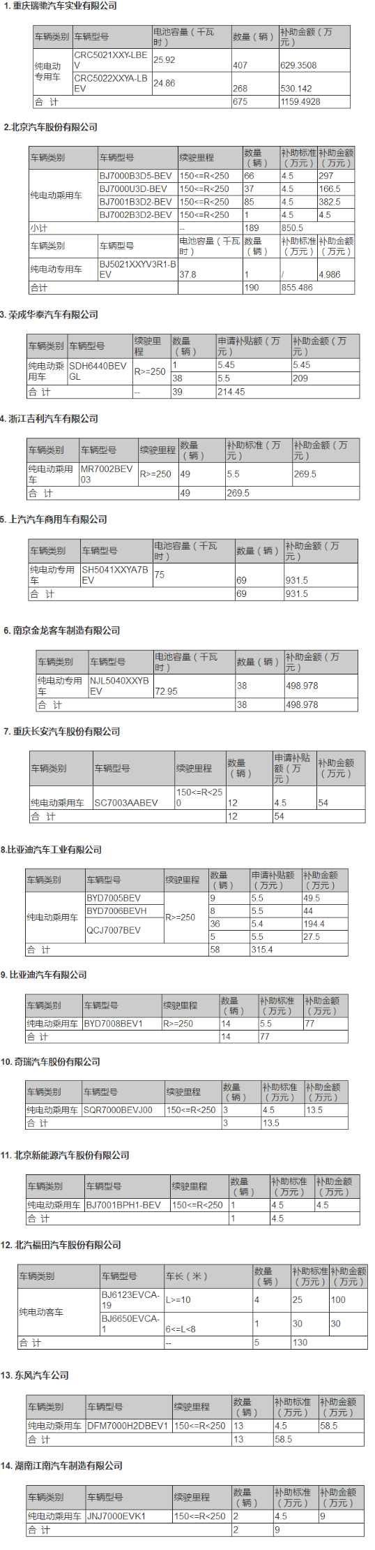 其中,重慶瑞馳汽車將獲得1159.5萬(wàn)元,北汽將獲得855.5萬(wàn)元,華泰汽車將獲得214.5萬(wàn)元,吉利汽車將獲得269.5萬(wàn)元,上汽商用車將獲得931.5萬(wàn)元,南京京龍將獲得499萬(wàn)元,重慶長(zhǎng)安汽車將獲得54萬(wàn)元,比亞迪工業(yè)汽車將獲得315.4萬(wàn)元,比亞迪汽車將獲得77萬(wàn)元,奇瑞汽車將獲得13.5萬(wàn)元,北汽新能源將獲得4.5萬(wàn)元,北汽福田將獲得130萬(wàn)元,東風(fēng)汽車將獲得58.5萬(wàn)元,江南汽車將獲得9萬(wàn)元。