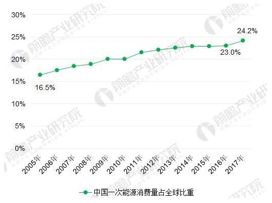根據《BP世界能源統計年鑒》的數據顯示,2016年中國能源消費增長1.3%。增速不足過去十年平均水平5.3%的四分之一。但中國仍然是世界上最大的能源消費國,占全球能源消費量的23%,和全球能源需求增長的27%。2016年,煤炭產量下降了7.9%,石油產量下降了7.2%,均為歷史最大降幅。中國石油對外依存度上升至68%,為歷史最高值。