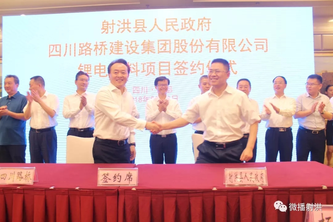 5月13日,射洪縣人民政府與四川路橋建設集團股份有限公司鋰電材料項目簽約儀式在成都舉行,年產5萬噸鋰電池正極材料和年產10萬噸正極材料前驅體項目正式落戶射洪。