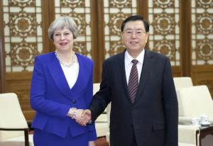全國人大常委會委員長張德江1日在人民大會堂會見了英國首相特雷莎·梅。張德江說,2015年習近平主席成功訪英,開啟了中英關系黃金時代。習近平主席此次與首相女士的會晤必將推...