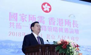 全國人大常委會委員長張德江3日上午在人民大會堂出席香港特別行政區政府和香港一帶一路總商會聯合舉辦的國家所需、香港所長——共拓‘一帶一路’策略機遇論壇并...