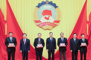 4月24日,全國政協(xié)在北京隆重舉行儀式,向不再連任的在京十二屆全國政協(xié)常委頒發(fā)紀念證牌。全國政協(xié)主席汪洋出席儀式并講話。這是汪洋等向部分不再連任的常委頒發(fā)紀念證牌。新...