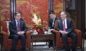 新華社北京4月17日消息,國(guó)家副主席王岐山當(dāng)日在中南海會(huì)見越共中央政治局委員、中央書記處書記、中央經(jīng)濟(jì)部部長(zhǎng)阮文平率領(lǐng)的越南共產(chǎn)黨代表團(tuán)。王岐山表示,中國(guó)特色社會(huì)主義...