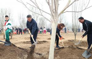 4月2日,黨和國家領導人習近平、李克強、栗戰書、汪洋、王滬寧、趙樂際、韓正、王岐山等來到北京市通州區張家灣鎮參加首都義務植樹活動。這是習近平同大家一起植樹。新華社記...