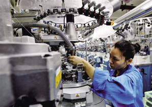 亞洲第一大襪業公司——中昊針織的一名工人在襪子生產車間內調整針織機。在長三角區域,一批以專精特新見長的中小型企業,正快速成長為經濟發展的小巨人。(圖片來源:新華社 方喆...